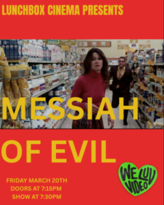 Join Lunchbox Cinema at We Luv Video on March 20th at 7:30 PM for a descent into the surreal, blood-soaked dreamscape of this 1970s cult masterpiece.