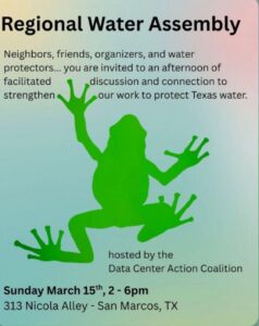 Gather in San Marcos on Sunday, March 15 2026, from 2-6PM for an afternoon of facilitated discussion and connection to strengthen our work to protect Texas water.