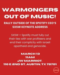 Warmongers Out of Music Rally Event Details Date: March 13, 2026 11:00 am – 1:00 pm Venue: JW Marrio Categories: Action